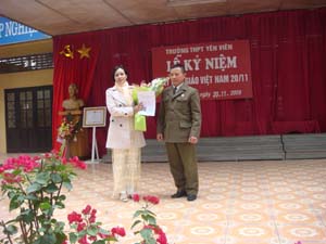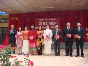 Tiết mục văn nghệ của các thầy cô Cô Chính - Thầy Phong nhận Kỷ niệm chương